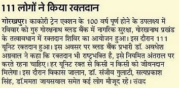 काकोरी शताब्दी महोत्सव के उपलक्ष्य में रक्तदान