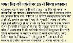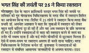 भगत सिंह की जयंती पर 25 ने किया रक्तदान